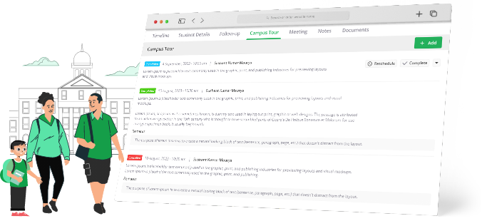 At Simply Admission, our goal is to consistently enhance the parental experience. To achieve this, we offer a campus tour feature that enables admission counsellors to invite parents for visiting the school campus, including sending communication, one-to-one interactions etc. This empowers counsellors to interact with applicants and send personalized communications via email, SMS, and WhatsApp.